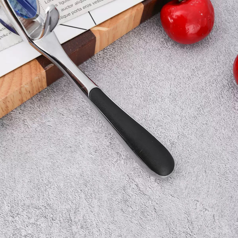 Общата дължина на този тежък нож за пица от цинкова сплав е 18 см и тежи 92 г, което го прави подходящ за държане и използване от хора от всякаква възраст и пол. Дръжката му е изработена от висококачествен лят под налягане материал от цинкова сплав, докато острието е изработено от екологична и безопасна неръждаема стомана 304. Острието е с диаметър 6,5 см и можете просто да нарежете пицата, като я натиснете и я разточите върху тестото за пица. За да гарантираме здравето на нашите клиенти, ние стриктно се придържаме към европейските стандарти за сертифициране за контакт с храни, като LFGB, когато избираме суровини и методи на обработка за продукти, които влизат в пряк контакт с храна. В резултат на това нашите продукти са безопасни за употреба и могат лесно да се почистват с вода. Моля, имайте предвид, че има пластмасова подложка против хлъзгане и намаляваща налягането на дръжката. Ние предлагаме набор от инструменти от една и съща серия, включително отварачки за вино, преси за чесън, орехови бисквити, отварачки за консерви, ножове за белене и други. Ние можем да предоставим на клиентите разнообразие от решения - не само продуктите, произведени от нашата фабрика, но и да им помогнем да решат всичките си нужди от доставки на едно място, предлагайки пълна гама от продукти, съобразени с техните изисквания.