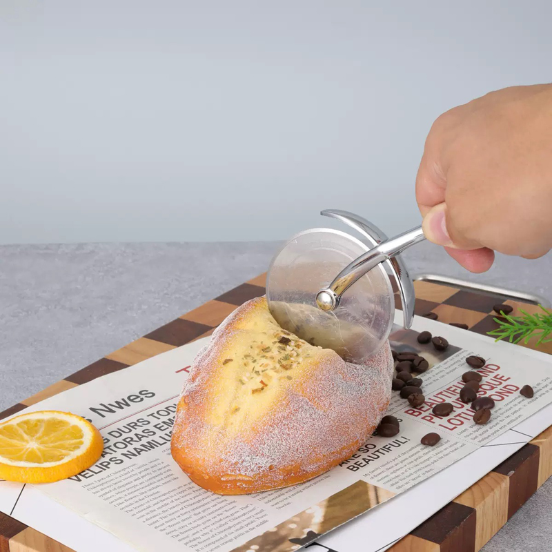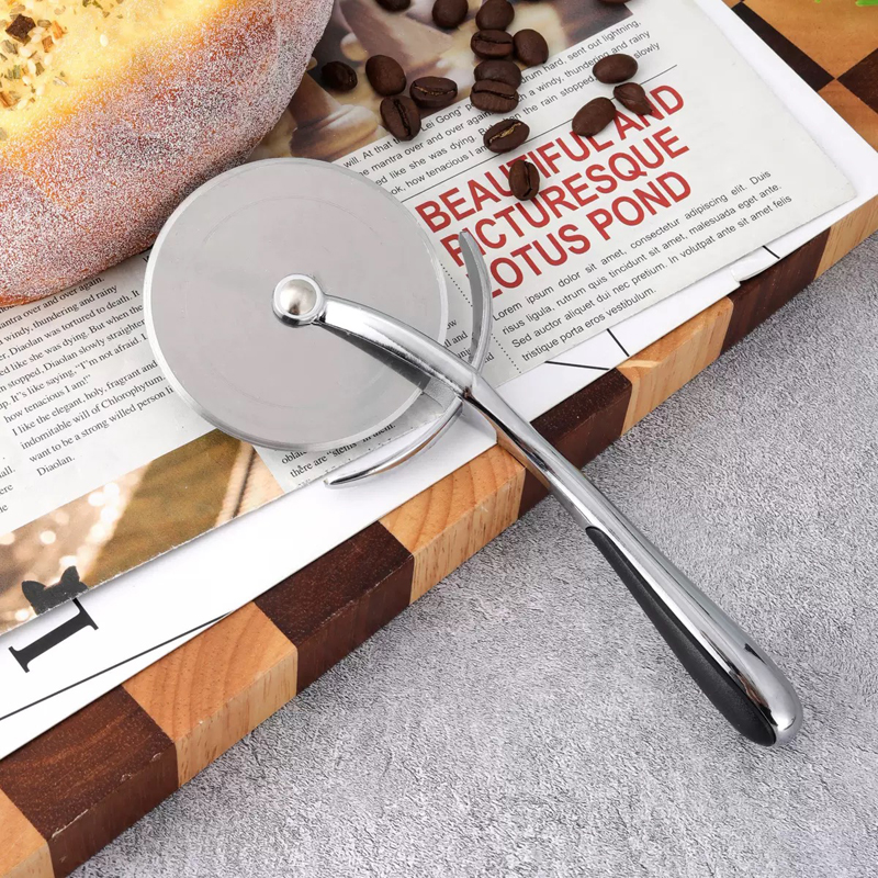 Тази тежка резачка за пица от цинкова сплав е удобен малък инструмент за домашна употреба и е идеалният спътник за приготвяне на пица. Резачката за пица е малка, лека и евтина, което я прави резачка за пица, която всеки може да си позволи да използва.