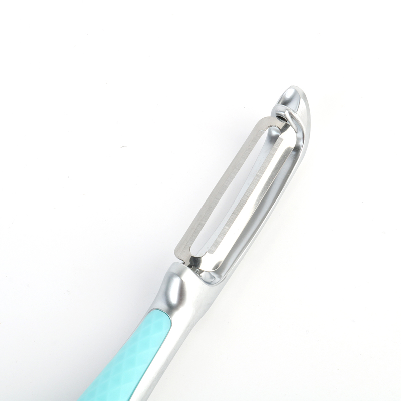 H542 е едно от предложенията на нашата компания, белачка с права дръжка и право острие. За разлика от традиционните дизайни с права дръжка и кръстосано острие, тази белачка с права дръжка и право острие предлага по-широка гама от практически приложения за потребителите, предоставяйки по-изчерпателно и гъвкаво изживяване. Тази минибелачка за зеленчуци от цинкова сплав със светлосиня дръжка е част от нашата дизайнерска серия Macaroon, която се откъсва от традиционния, скучен образ на трапезни и кухненски инструменти. Подобрява визуалното и качествено възприятие на тези инструменти, правейки ги да изглеждат по-изтънчени и първокласни. За разлика от традиционните белачки с дълги, тънки дръжки, H542 разполага с по-здрава дръжка. В комбинация с деликатните, пастелни цветове на серията Macaroon, тя красиво допълва елегантния, метален външен вид. Тази мини белачка за зеленчуци от цинкова сплав излъчва усещане за желаност, което го отличава сред другите опции.