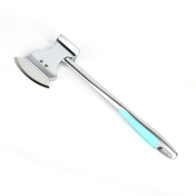 Острието на резачката за пица е изработено от висококачествена неръждаема стомана 304, а дизайнът му е вдъхновен от формата на брадва, което му придава по-практичен и визуално привлекателен външен вид. Инструментът е с умерено тегло, което го прави лесен за използване и универсален във функциите си. Независимо дали се използва като омекотител за месо или за рязане на пица, острието може да се използва и за премахване на месни кости и фасции или дори като нож за плодове за нарязване на зеленчуци и плодове, когато няма други ножове.