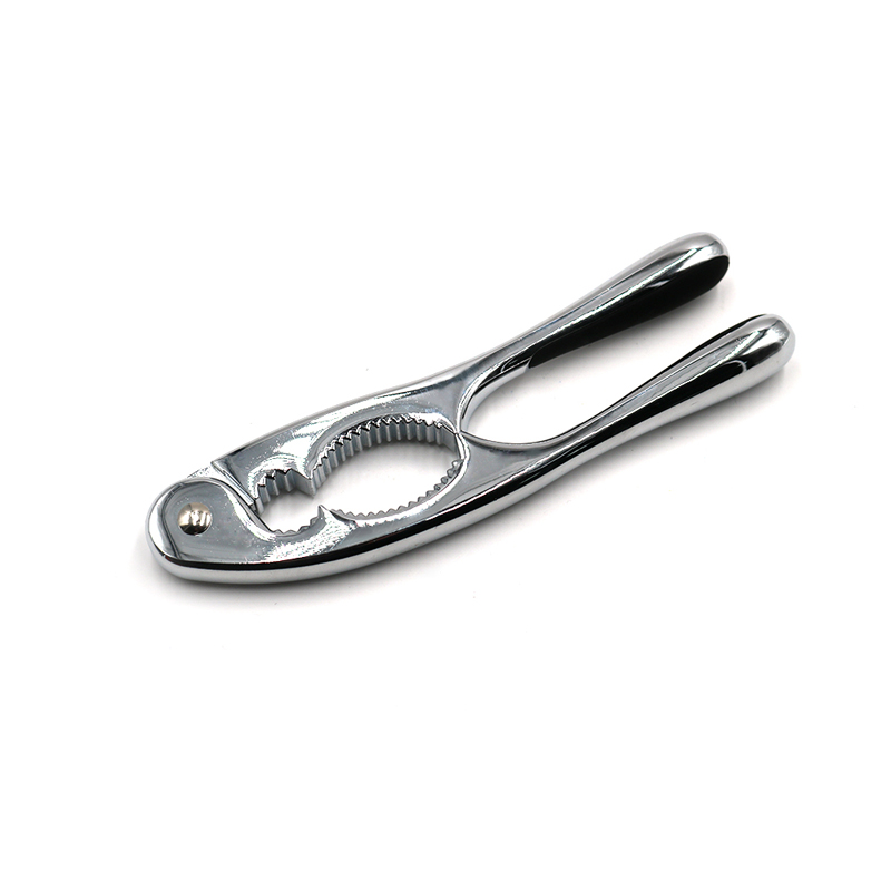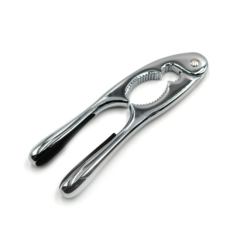Уредът за трошане на ядки от цинкова сплав, многофункционален инструмент за отваряне на ядки, механизъм с двойна челюст и различни по размер отвори, осигурява изключителна гъвкавост, побира различни видове ядки, включително орехи с твърда черупка, орехи с мека черупка и дори по-големи лешници. Този иновативен дизайн позволява лесно начупване на ядки с различни диаметри, като същевременно запазва структурната цялост и удобна за потребителя работа.